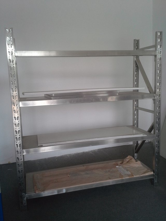 5、貨架各部件加工好成型之后全部經(jīng)打磨、酸洗、磷化、全自動粉末靜電噴涂、烘干等工藝處理后組裝成品。生產(chǎn)出的貨架成品表面光潔、美觀;貨架層可上下依50mm節(jié)距任意調(diào)節(jié),拆裝方便。