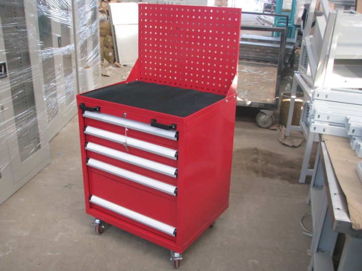 工具車由各種型號(hào)的工具柜增加頂柜和腳輪等移動(dòng)部件組成。