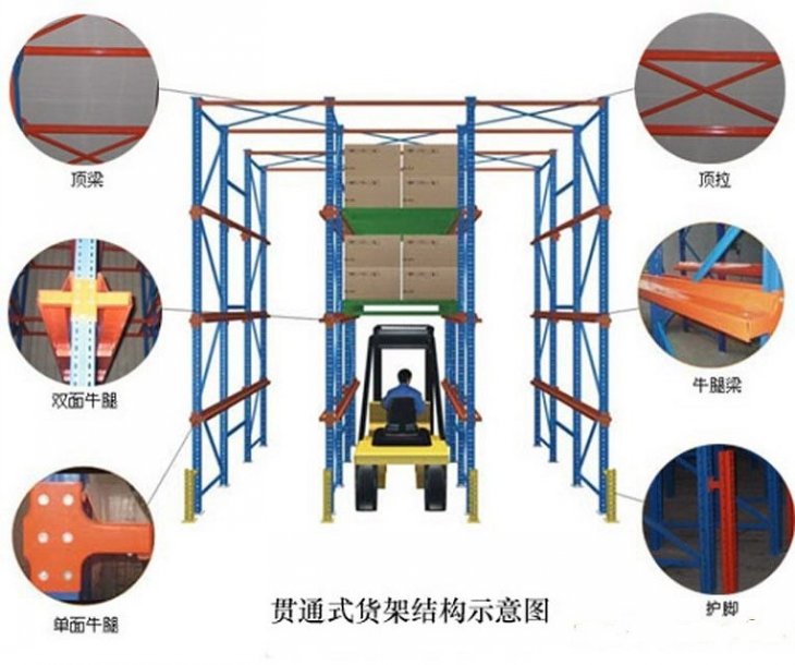 1、貨物存儲通道亦為叉車儲運通道,是存儲密度較高的一種形式貨架。
