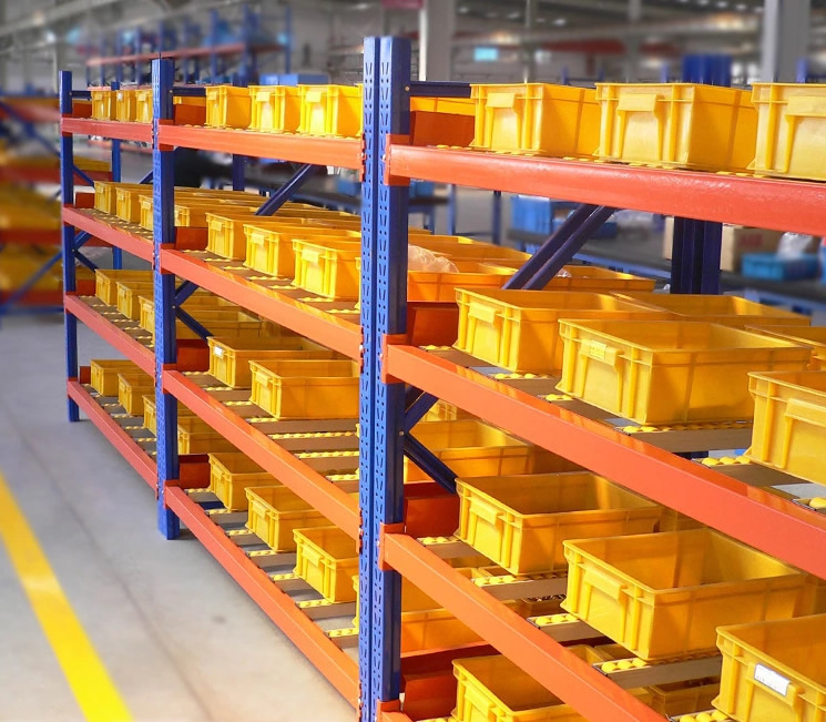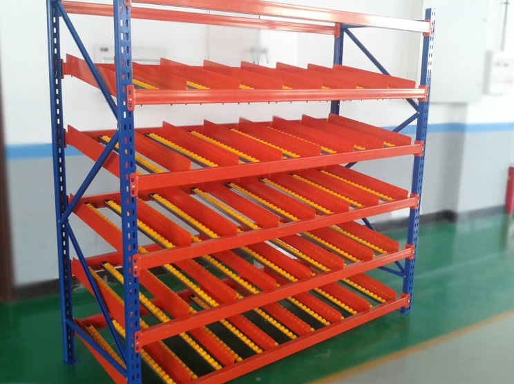 流利貨架等同于流利式貨架,產(chǎn)品常由中型橫梁式貨架演變而成,通過滾道將貨物從配貨端輸送到取貨端,貨物借助重力自動下滑,可實(shí)現(xiàn)“先進(jìn)先出”作業(yè),使用成本低,存儲速度快、密度大。通常使用在企業(yè)的精益生產(chǎn)流水作業(yè)。