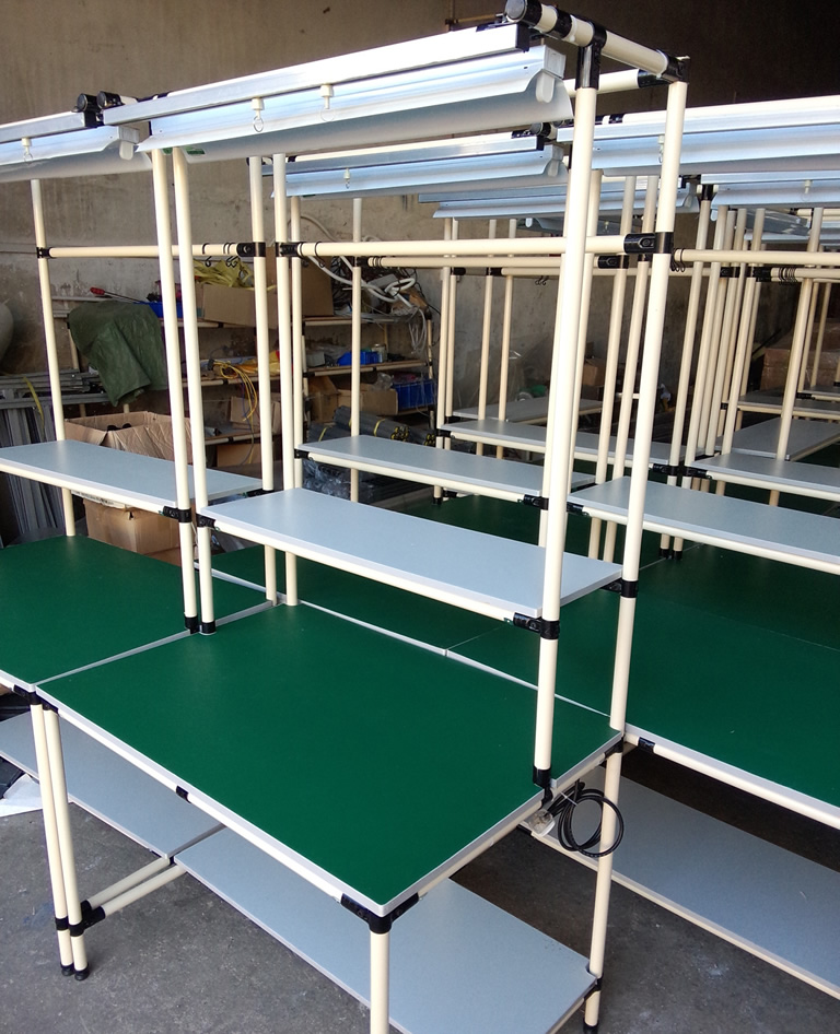 5、工作桌可加裝掛板、電器板、燈頂板、棚板等桌上部件,具有多種選擇,能夠滿足各種工位的需求。